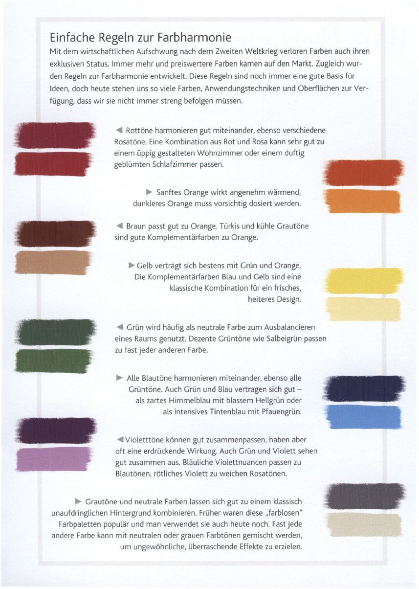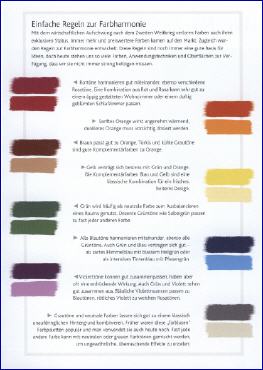 mit vielen Beispielen gelungener Farbkombinationen und -harmonien, unterteilt nach Farbgruppen. Das handliche kleine Buch ist sowohl für "Laien" als auch Profis eine gute Orientierung