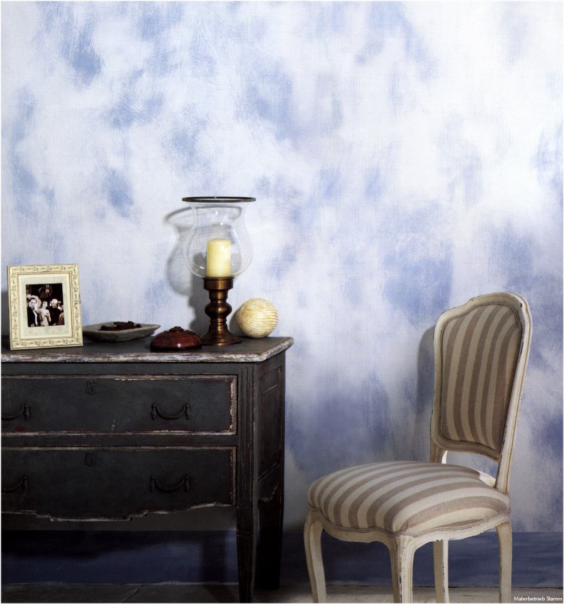 Denn die meisten Techniken basieren auf traditionellen Verfahren, kombiniert mit modernen Materialien. Da wird zum Beispiel von Hand gespachtelt, gewischt und getupft. Verläufe werden angelegt oder impressionistische Farbmuster. Alter Marmor wird interpretiert und Sandstein nachempfunden. Dieser handwerkliche Charakter macht den besonderen Reiz der gestalteten Flächen aus - ihren einzigartigen Zauber.