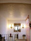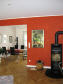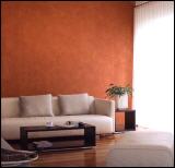 Entspannend und anregend zugleich ist diese gelungene Kombination von Strukturen und Farbigkeiten. Gerade zu ruhigen glatten Oberflächen wie Holzparkett, Couchtisch und Ledersofa steht die fein-wolkig lasierte Wand in reizvollem Kontrast. Durch zweifachen Lasurauftrag erhält die Akzentwand eine feurig-mystische Tiefe, die dem Raum Leben einhaucht und die Möbel erst so richtig zur Geltung bringt. |