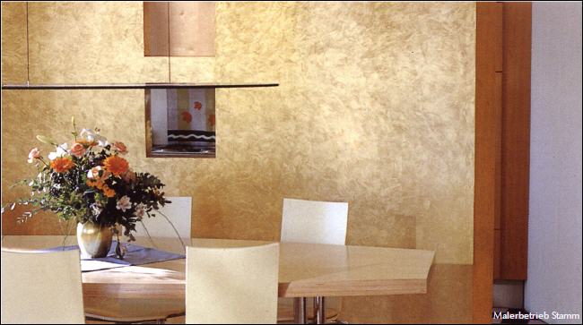 Goldspachtelfinish aus dem Programm "Villa Venezia" der Firma Jaeger Lacke