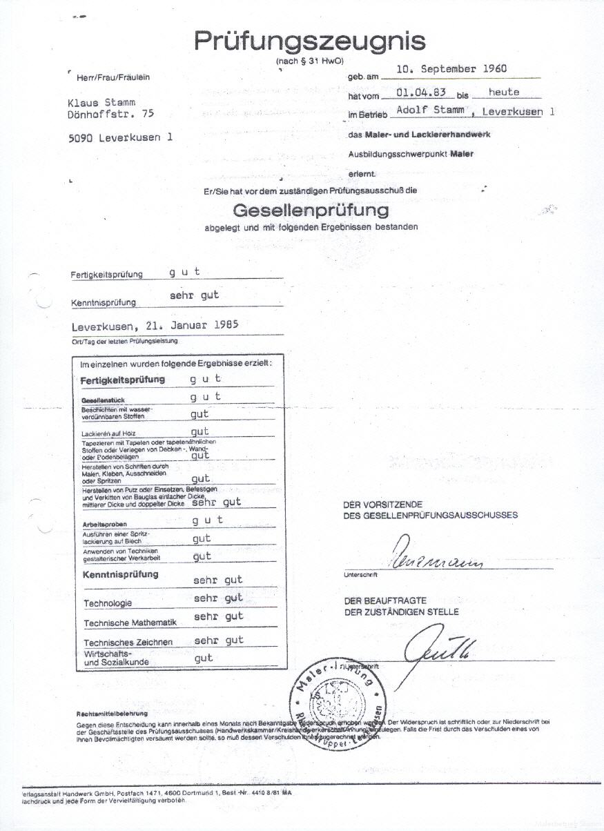 Fachkundeprüfung zum Sachverständigen für das Maler- und Lackiererhandwerk beim Landesinnungsverband Nordrhein.