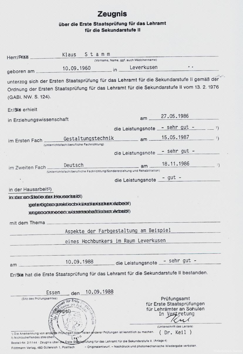 Erstes Staatsexamen für das Studium der Gestaltungstechnik und Germanistik für berufliche Fachrichtungen, Sekundarstufe II.